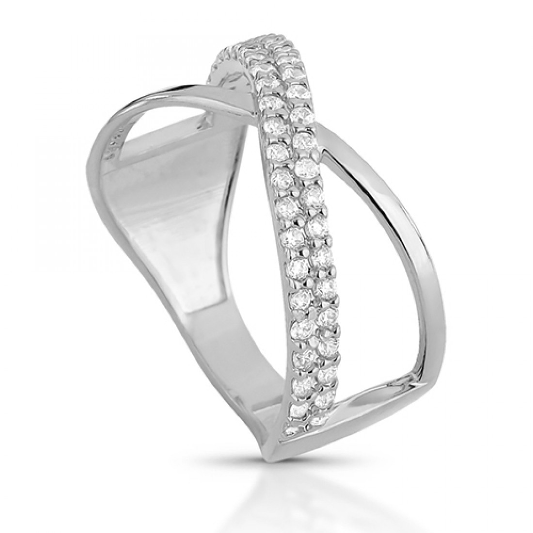 Anel sobreposto aro liso e zirconia cristal, prata com banho de ouro. 1415380..