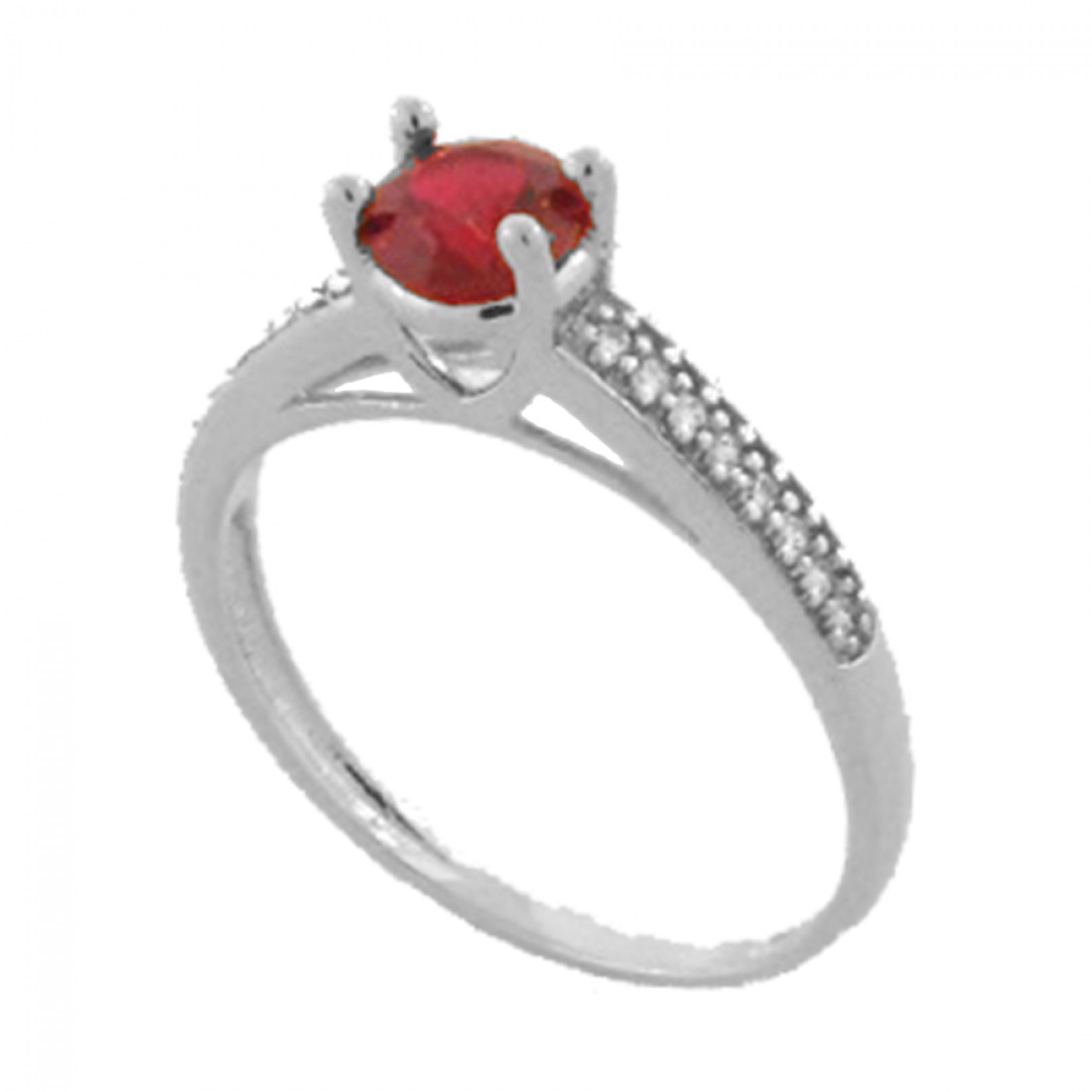 Anel solitario vermelho rubi 5mm zirconia cristal nas laterais, prata. 341493