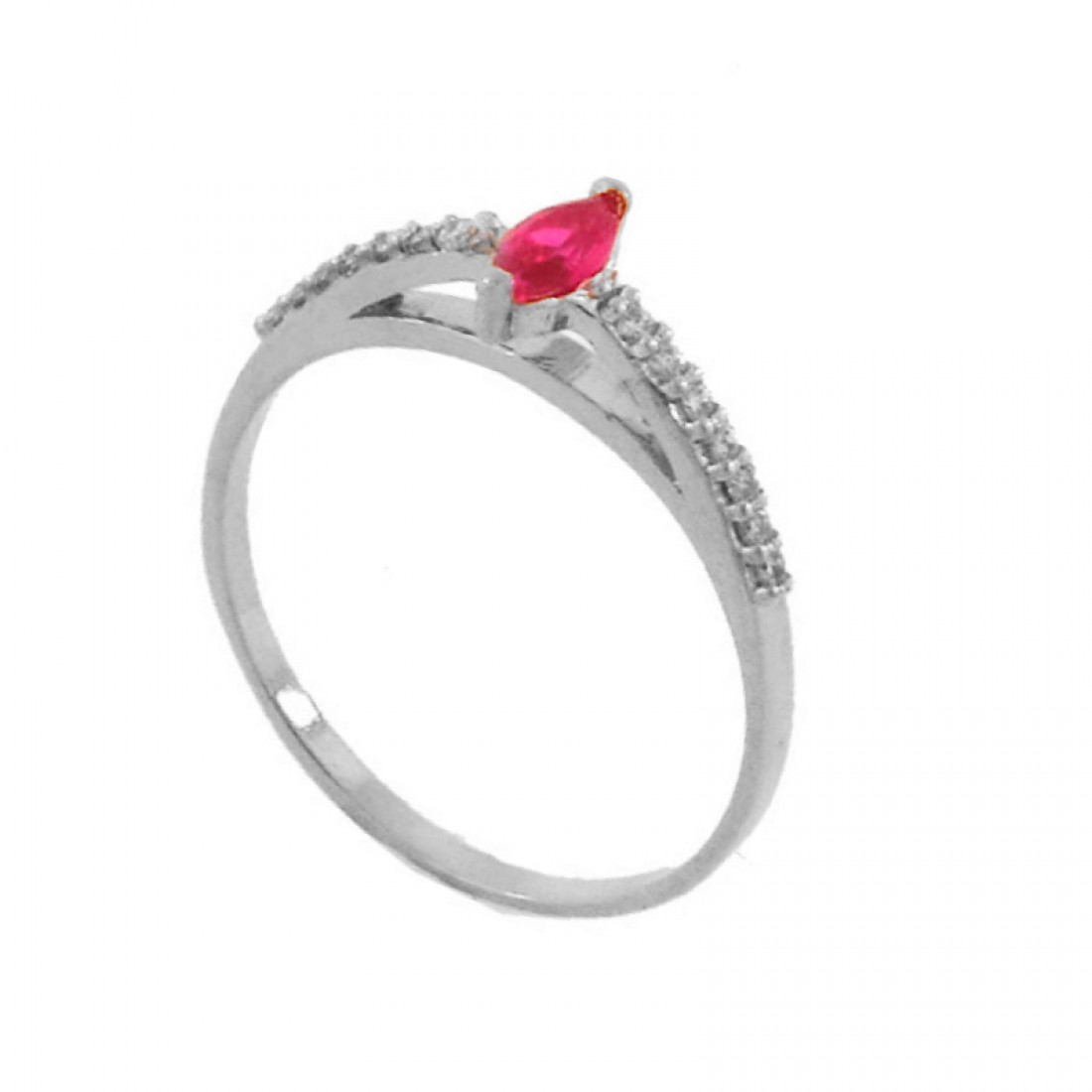 Anel solitario navete vermelha 6mm zirconia cristal nas laterais, prata. 341121