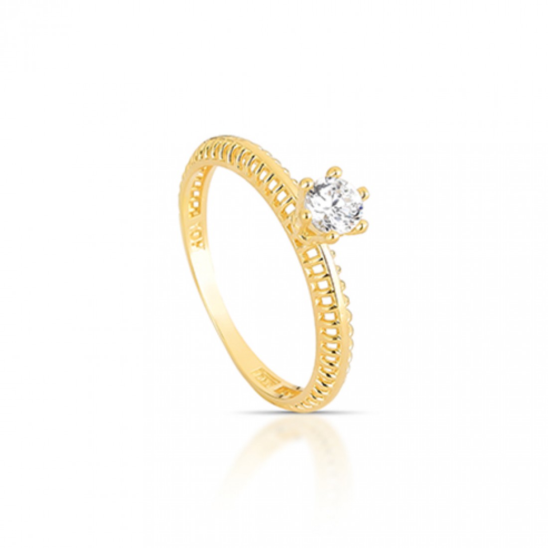 Anel com zirconia cristal vazado mas laterais, Prata. 3415470..