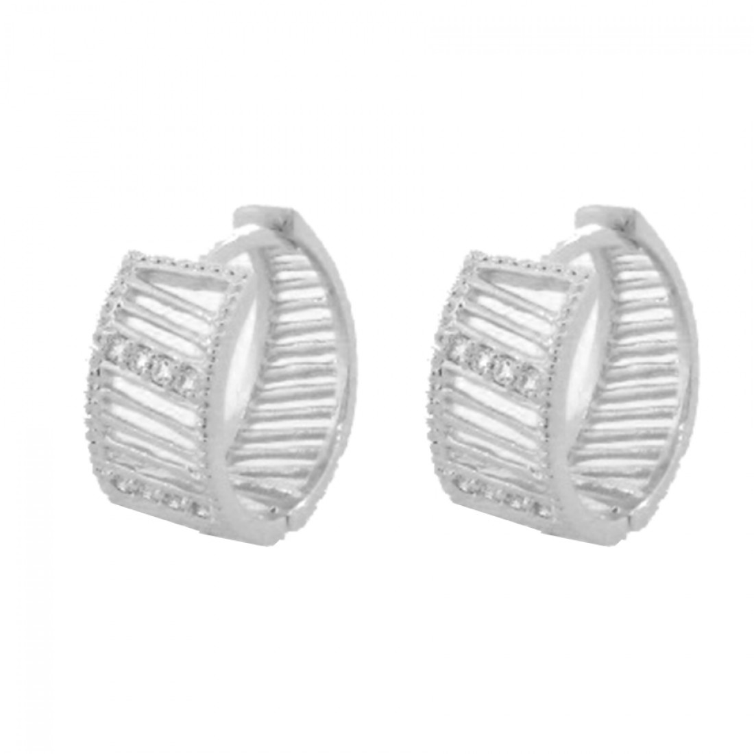 Brinco argola pequena lisa vazada com 2 filetes zirconia cristal. 9mm, rata. 350014