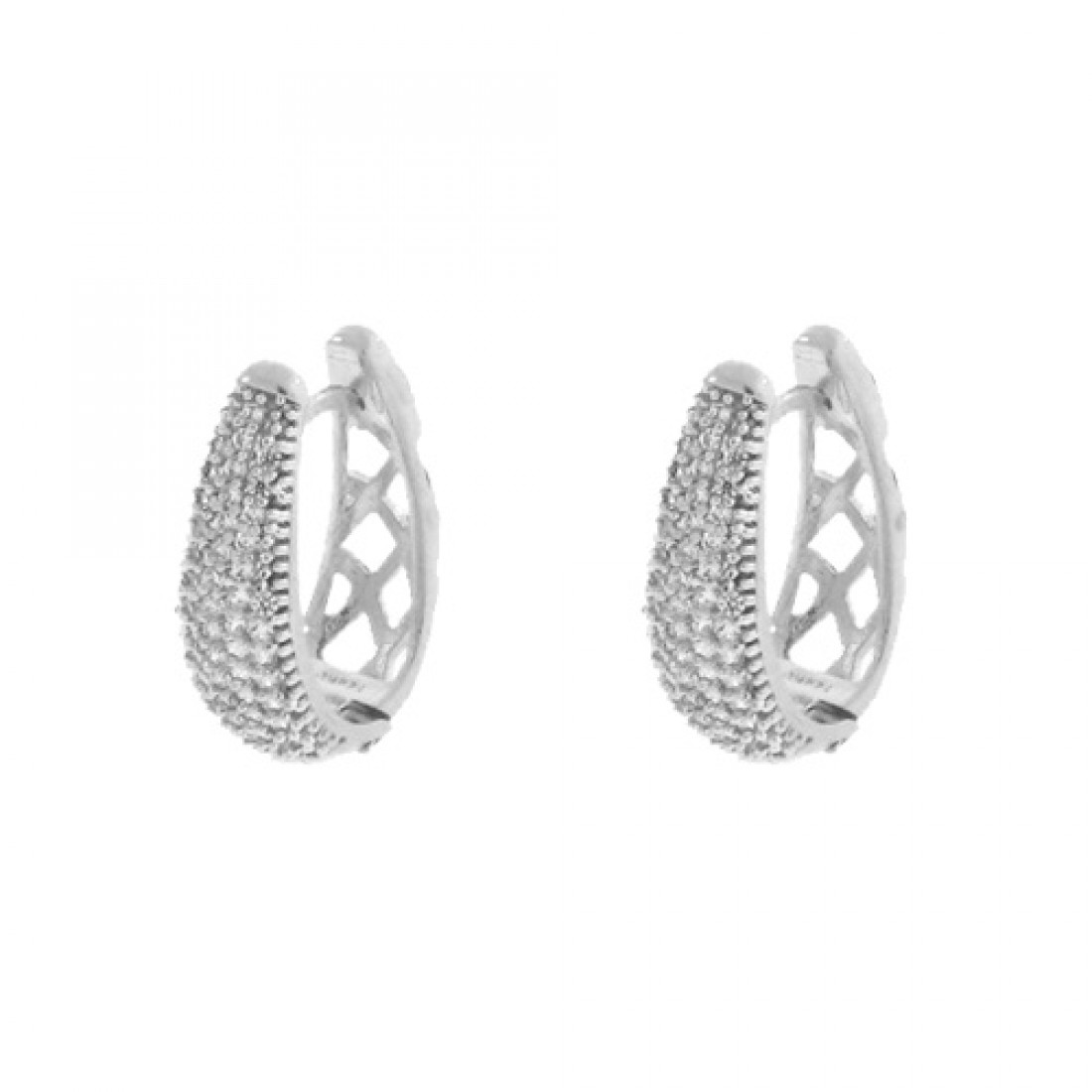 Brinco argola oval zirconia cristal na frente vazado atras, prata com banho de ouro...