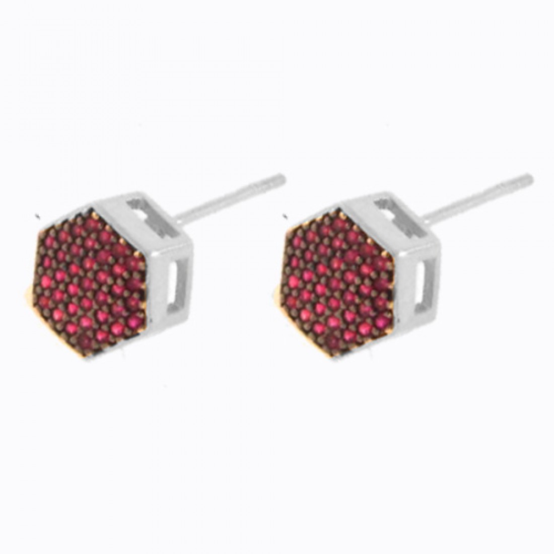• Brinco sextavado zirconia vermelha. 8x8mm, prata. 351398