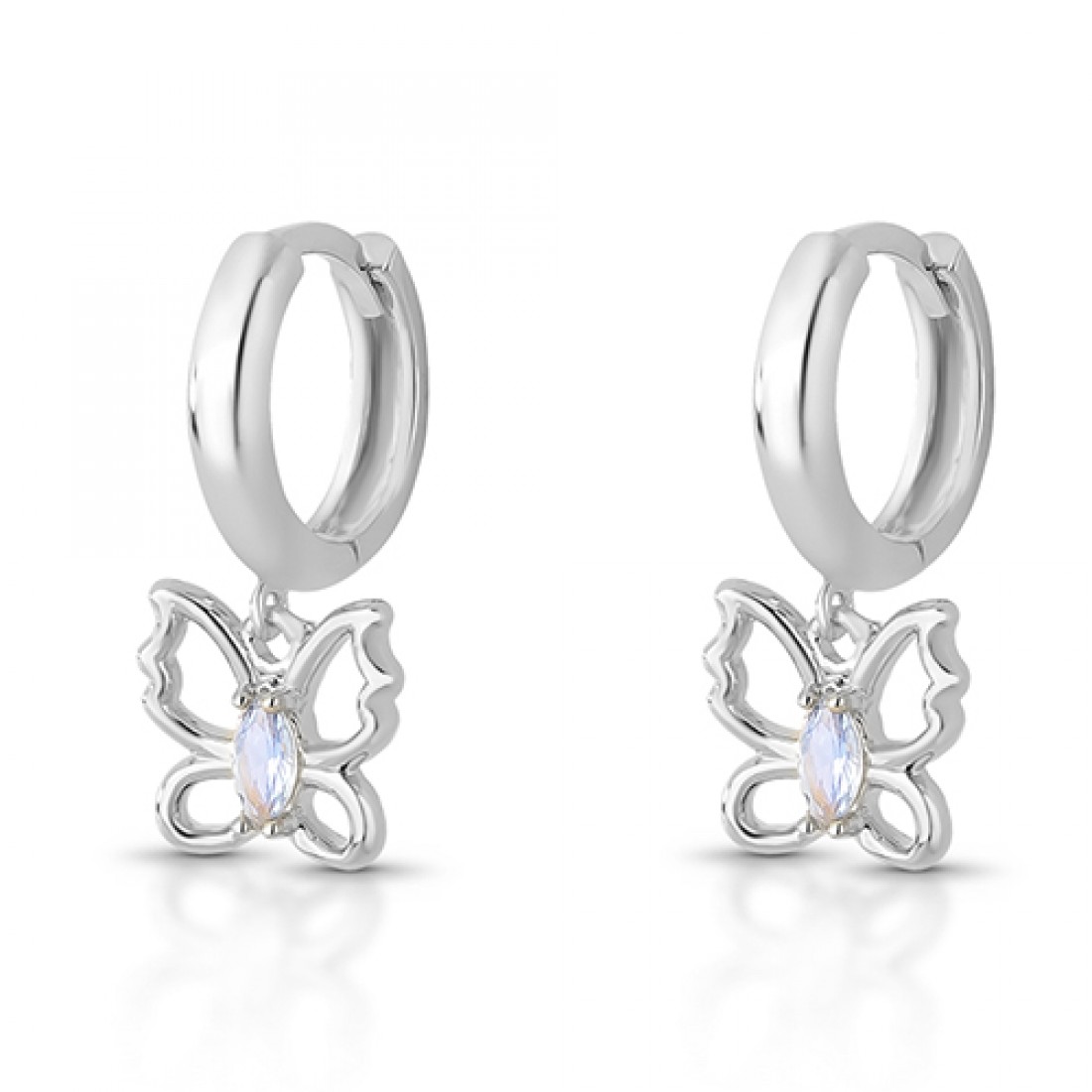 • Brinco argola pequena borboleta azul claro, prata. 3535421