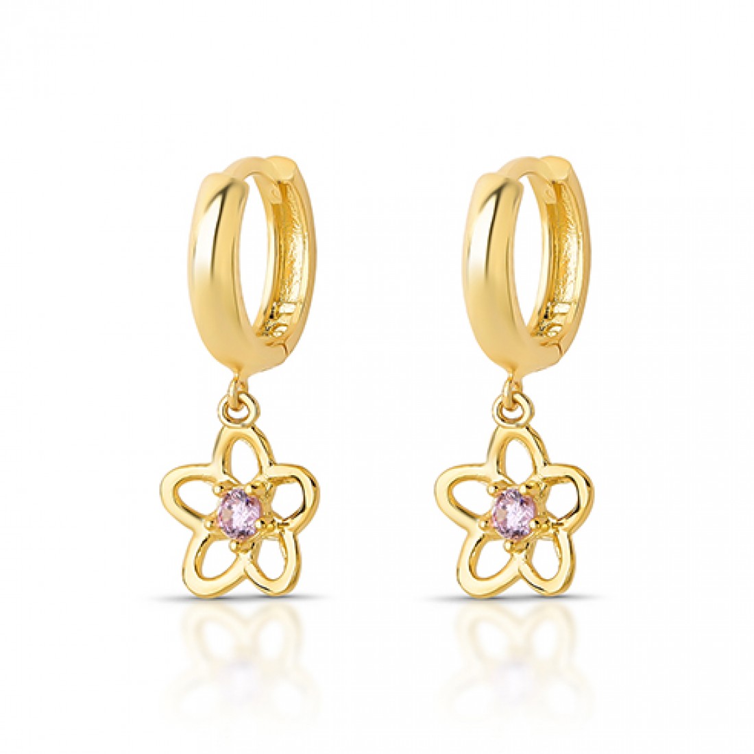 • Brinco argola pequena com flor zirconia rosa pendurada. 1535406