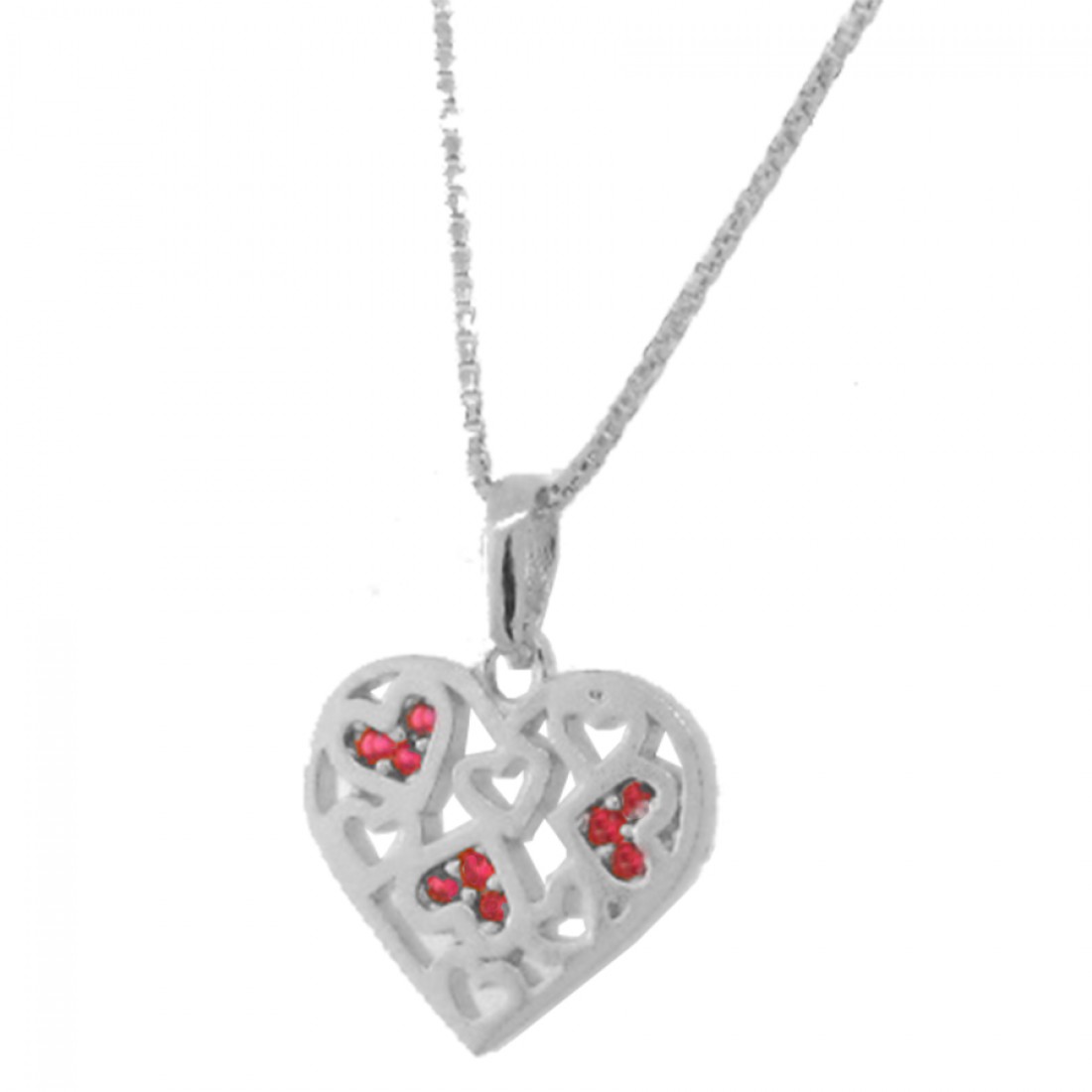 • Colar coracao com coracoes liso e zirconia vermelha dentro. 6x7mm, prata. 361564