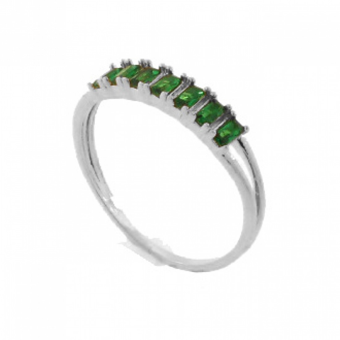 Anel 7 baguetes verde esmeralda, prata. 341385