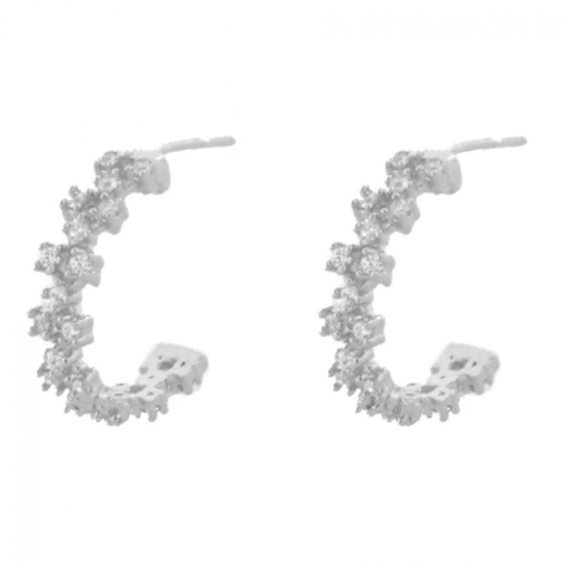 • Brinco meia argola pequena zirconia cristal . 9mm, prata. 350061