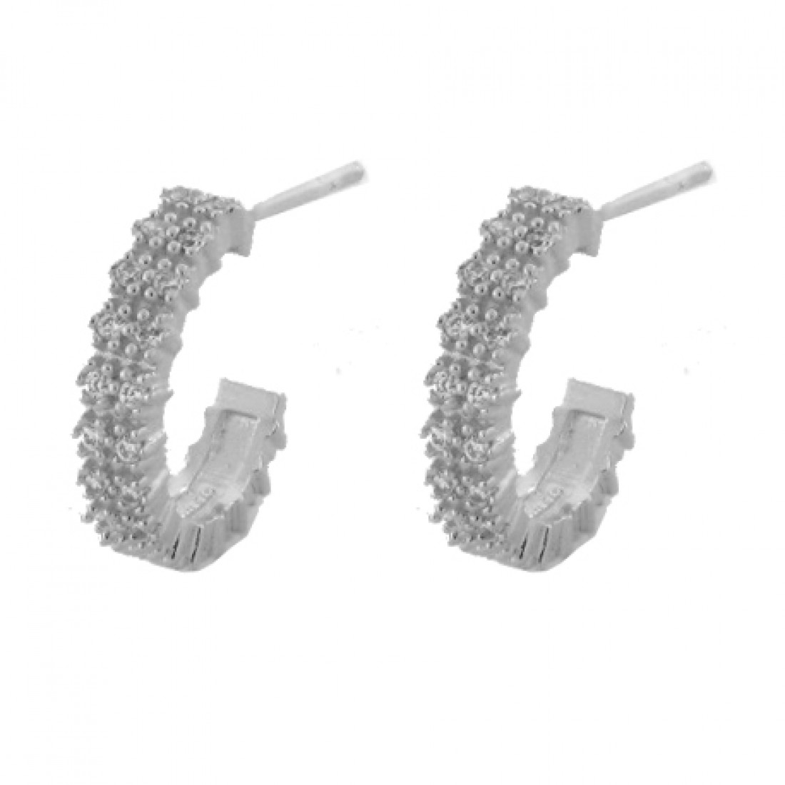 • Brinco meia argola media zirconia branca. 13x3mm, prata. 3517420