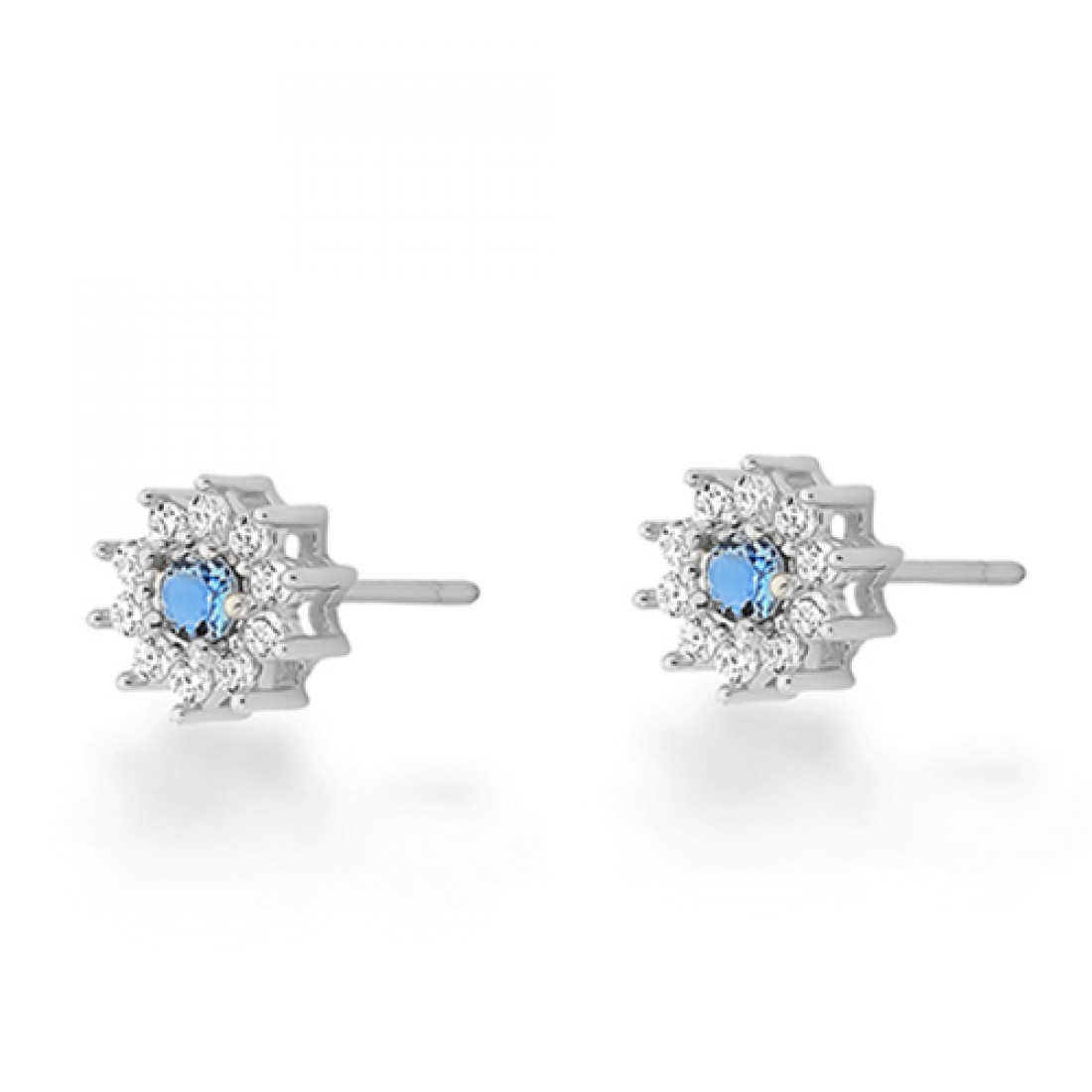 • Brinco flor quepquena miolo zirconia azul e cristal em volta. 8mm, prata. 3530232
