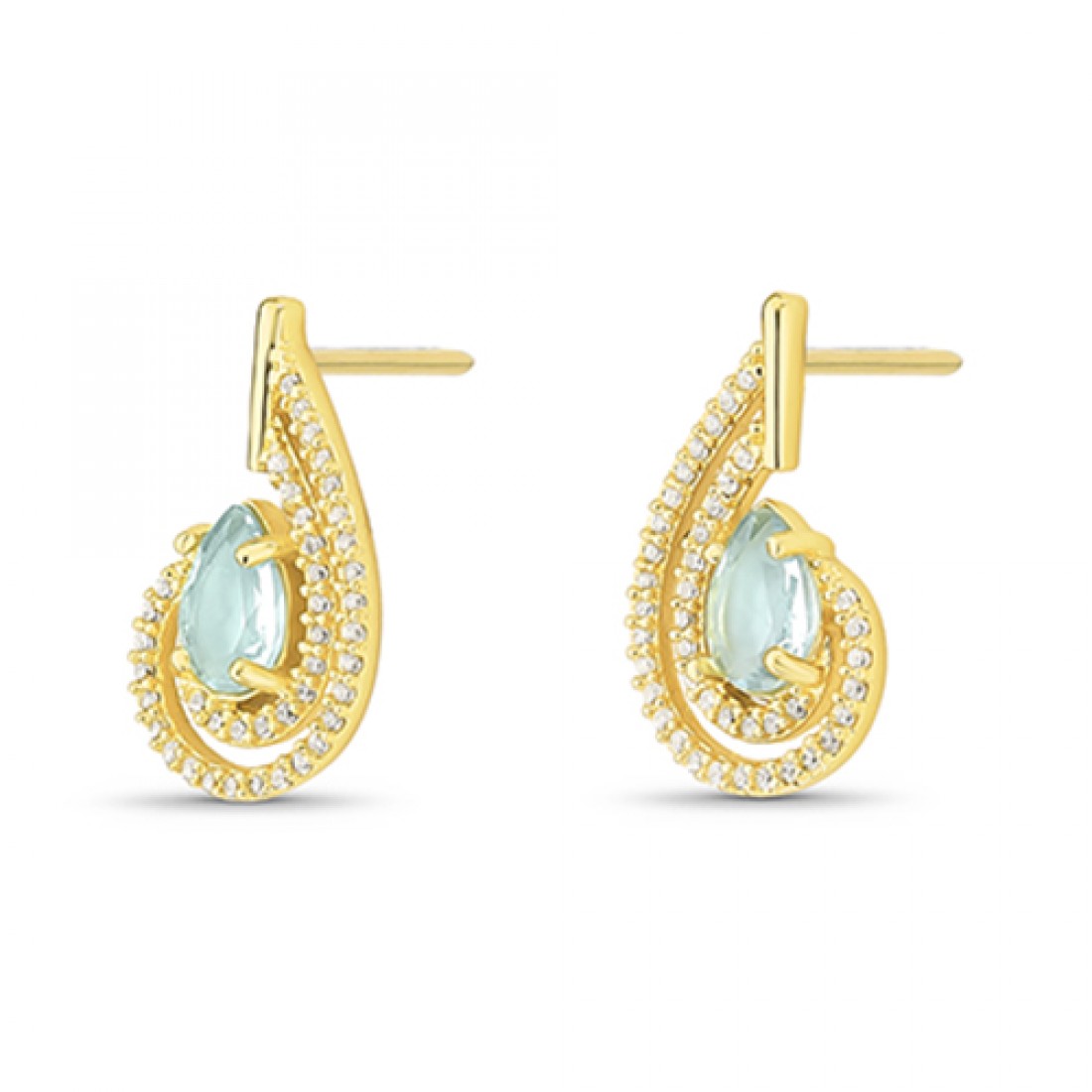 Brinco em gota agua marinha com movimento zirconia cristal, prata com banho de ouro. 1520501