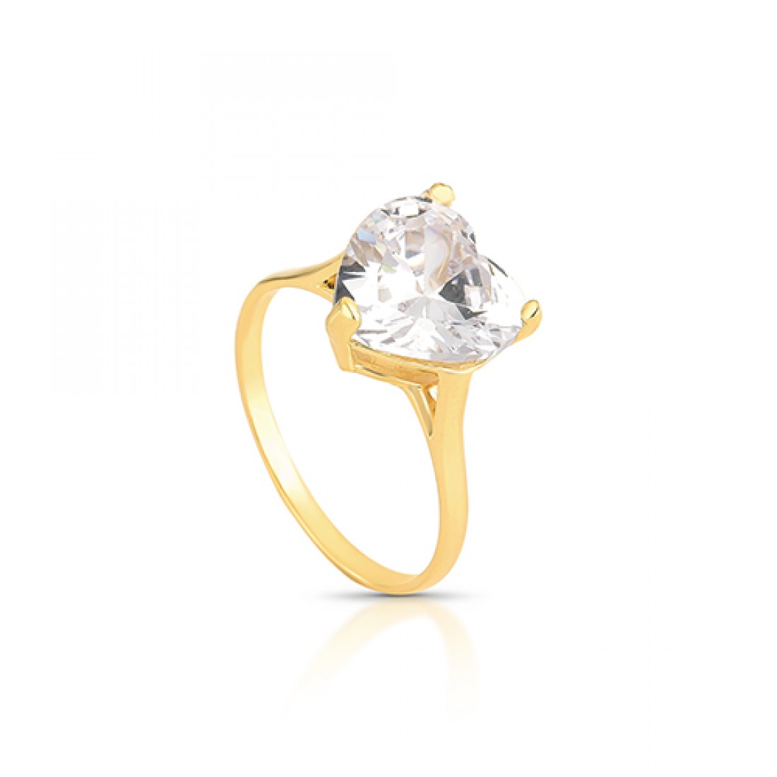 Anel coracao pedra maior cristal, prata com banho de ouro. 1435520