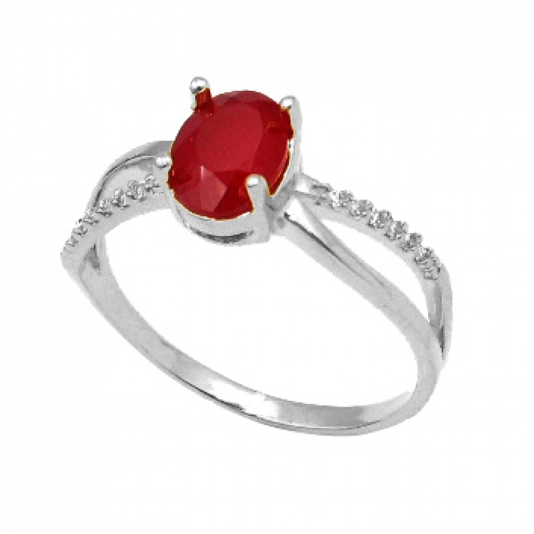 Anel solitario vermelho rubi zirconia cristal nas laterais. 141398