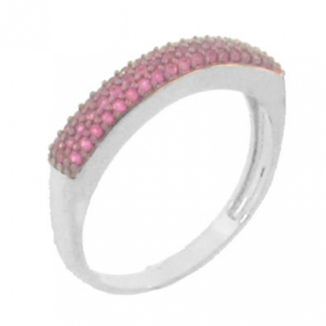 Anel pave reta media zirconia vermelha, prata com banho de ouro...