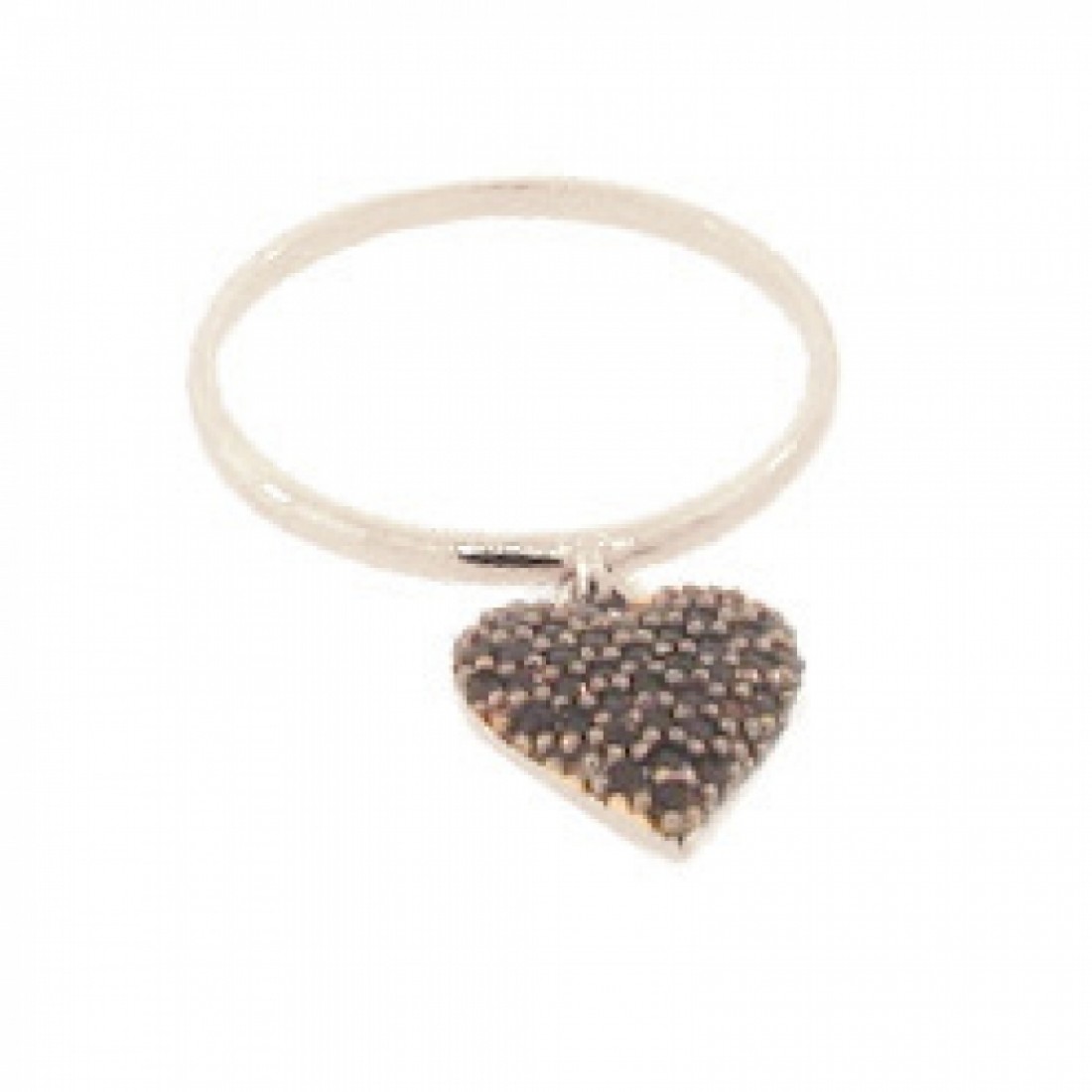 Anel coracao pendurado zirconia negra e aro liso. 141347