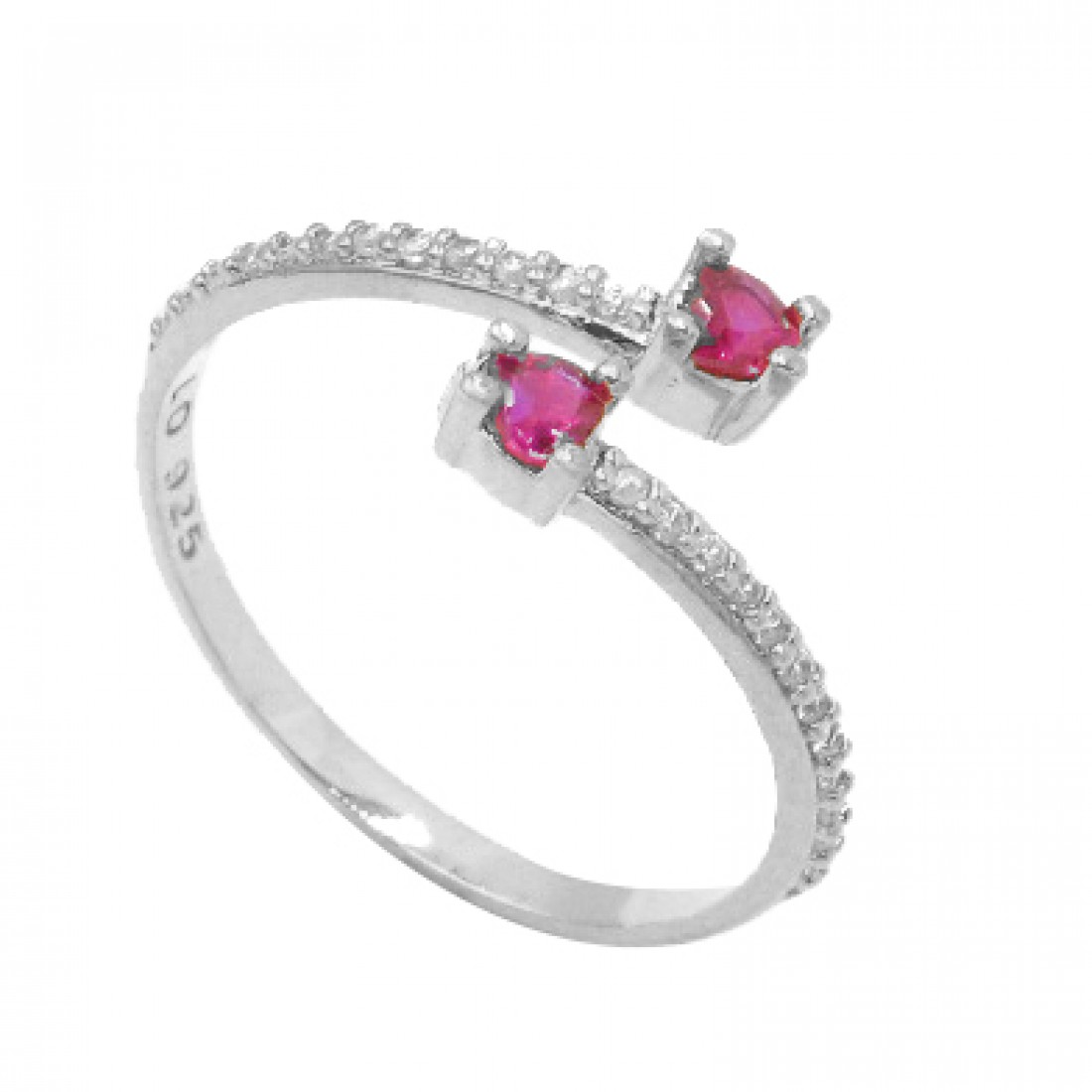 Anel volta zirconia branca e coracao vermelho rubi nas pontas, prata. 3415229