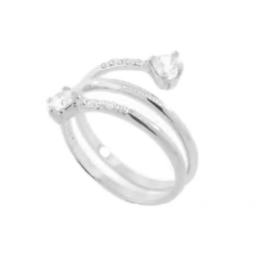 Anel espiral zirconia cristal e coracao cristal nas pontas, prata. 341360