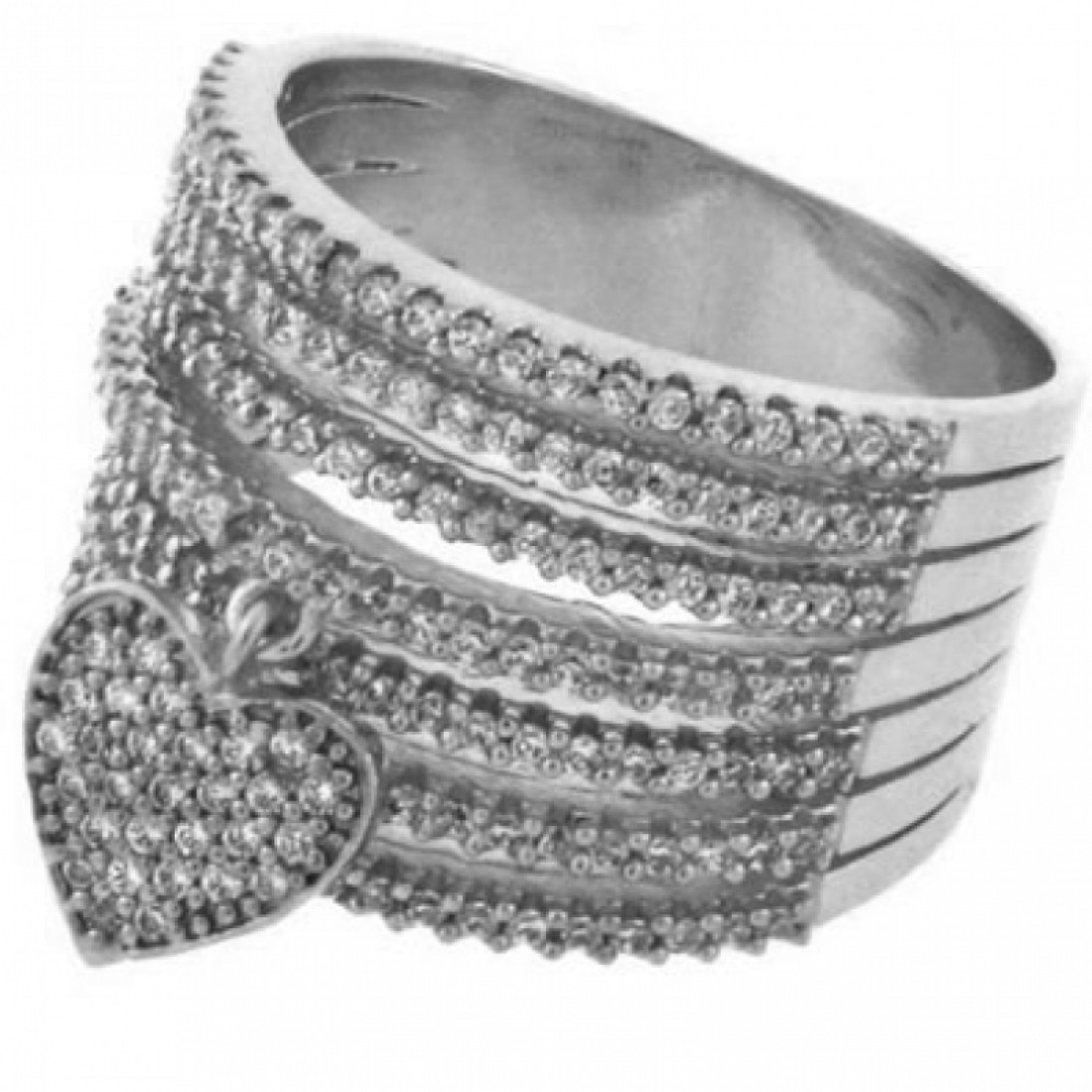 Anel 7 fios zirconia cristal com coracao zirconia cristal pendurado, prata. 340579