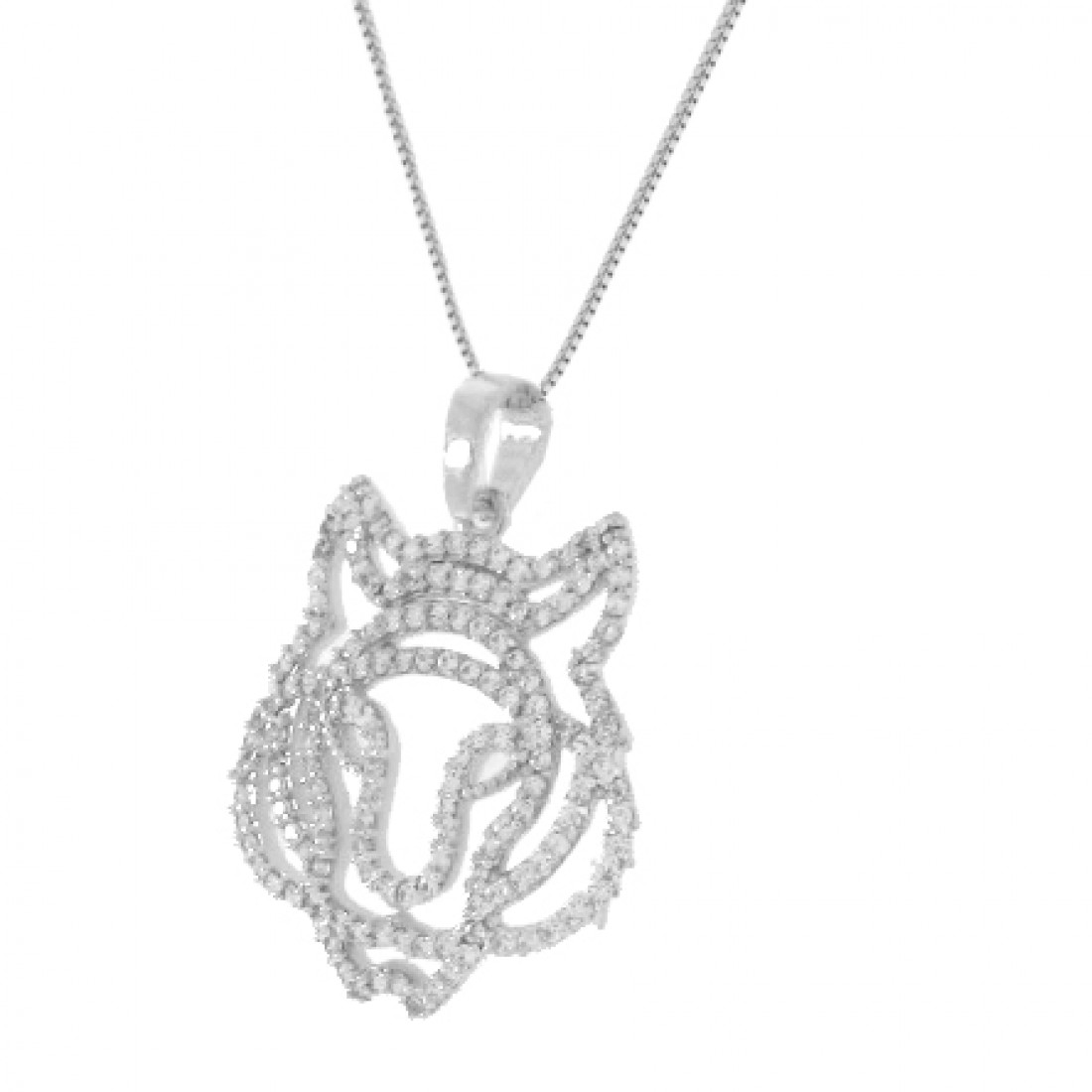 Colar tigre menor vazado zirconia cristal, 19x16mm, Prata. 361474