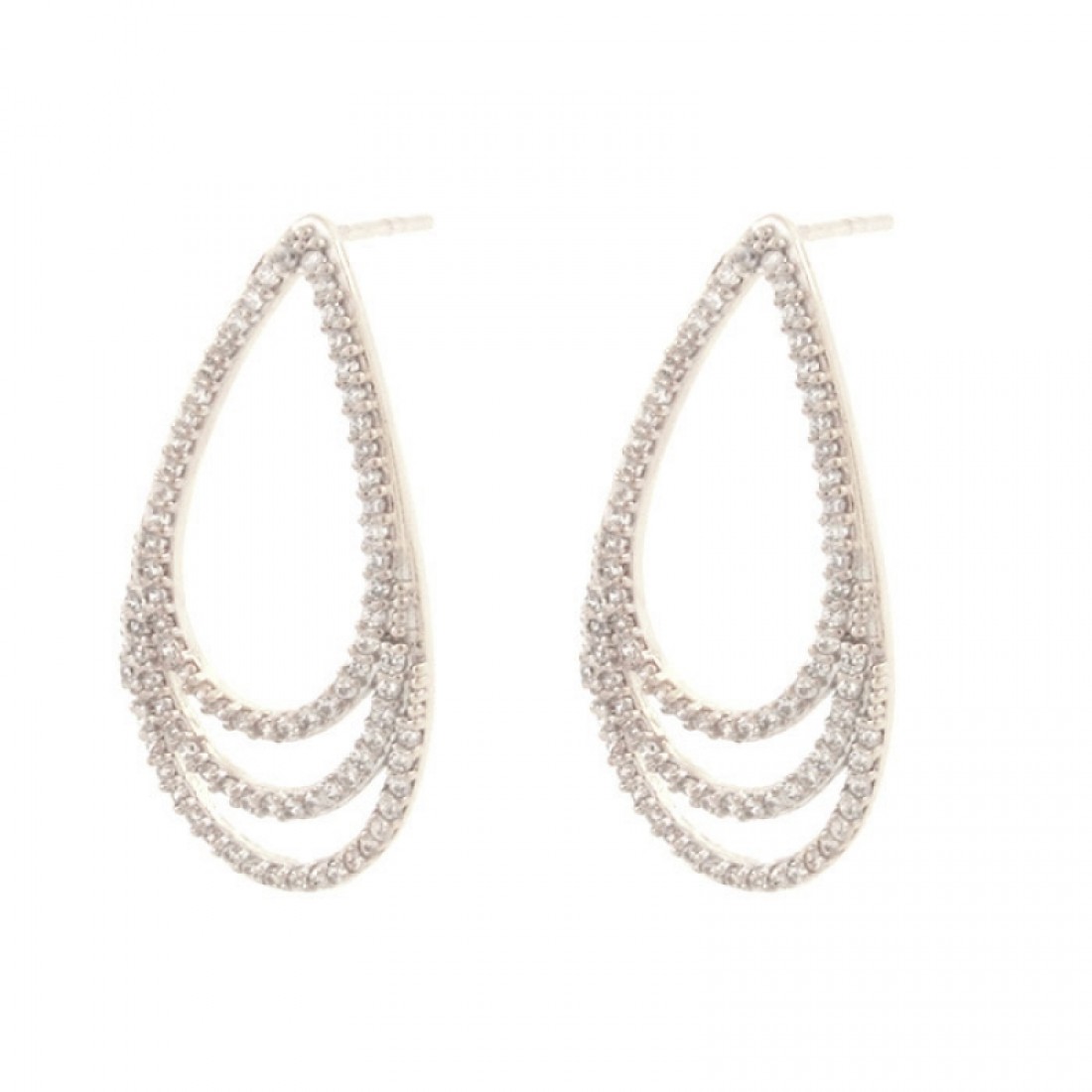 • Brinco gota vazada tres fios zirconia cristal. 14x11mm, prata. 351295