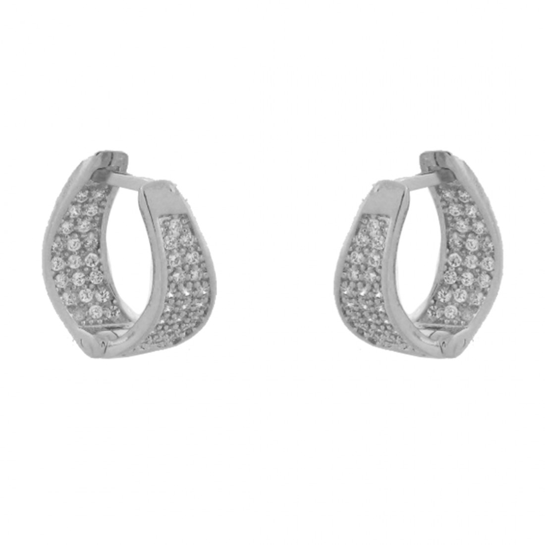 Brinco argola pequena com movimento zirconia branca dentro e fora. 14.5x5mm, prata. 3517370