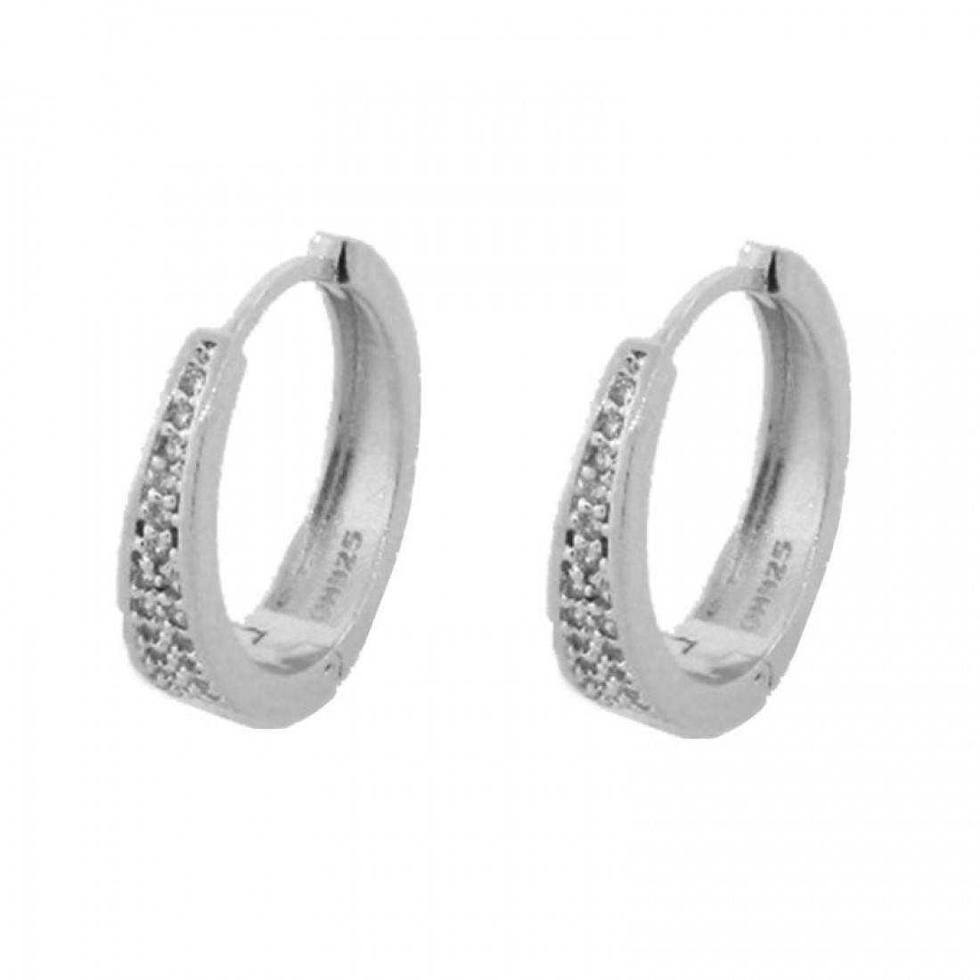 • Brinco argola media frente em v zirconia cristal. 17mm, prata. 351378