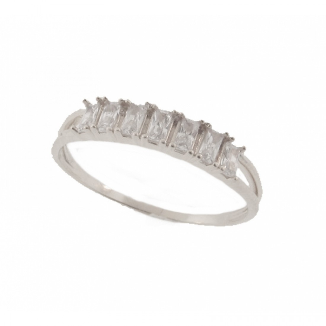 Anel 7 baguetes cristal, prata com banho de ouro. 141384..