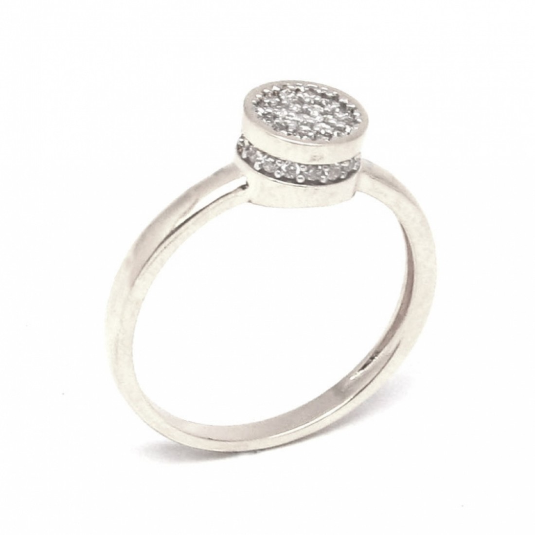 • Anel chuveiro redondo pequeno zirconia cristal em cima e em volta, prata. 341148