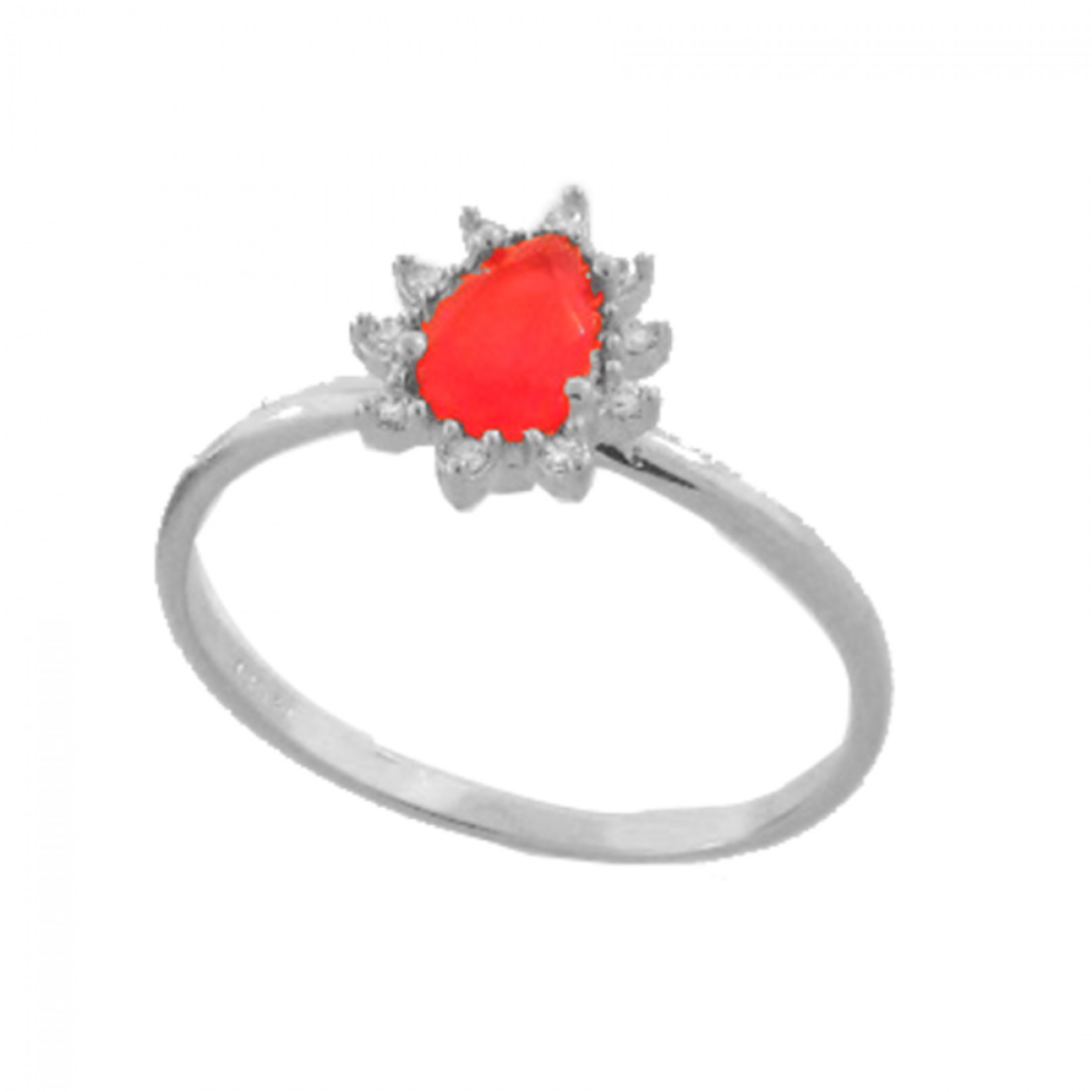 Anel solitario gota vermelho rubi e e zirconia cristal em volta. 1430059