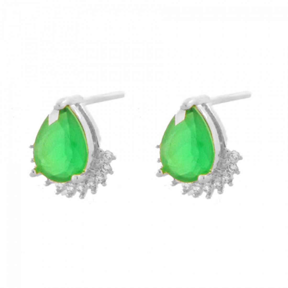 Brinco gota verde esmeralda zirconia cristal embaixo, 6x8mm, Prata. 3530088
