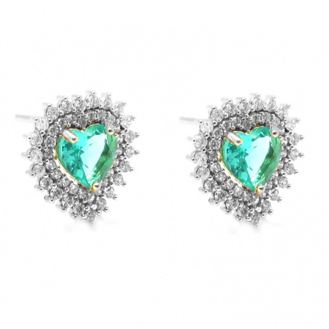 Brinco coracao pedra maior verde paraiba com zirconia cristal em volta, prata com banho de ouro...