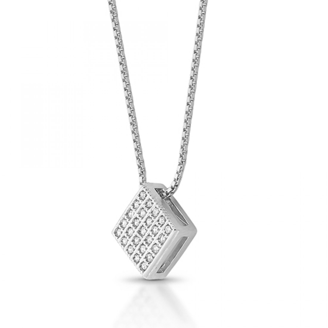 • Colar chuveiro losango pequeno zirconia cristal. 2x2mm, prata. 360856