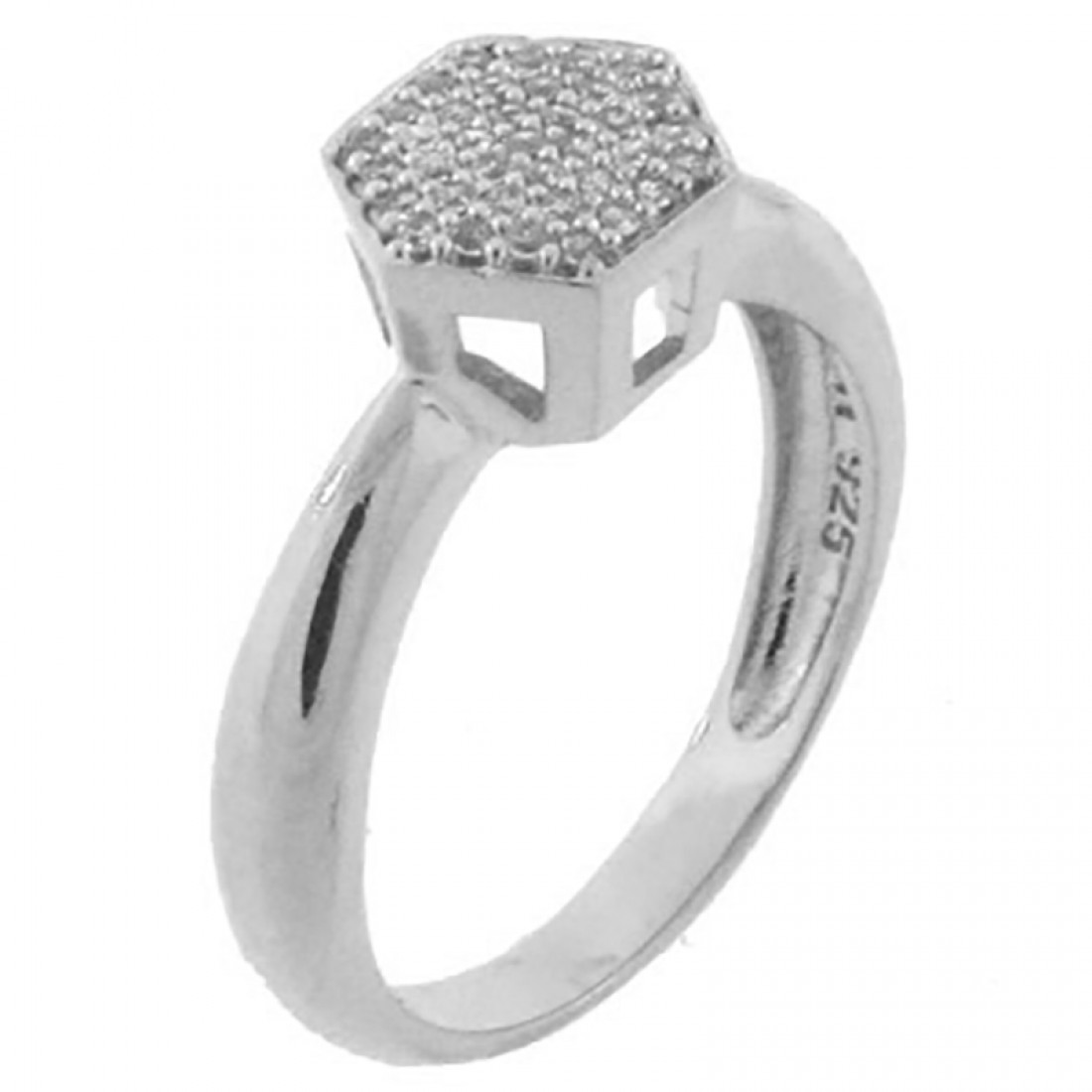 • Anel chuveiro sextavado zirconia cristal, prata. 340591