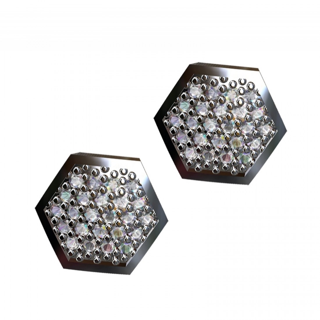 Brinco sextavado zirconia cristal, prata com banho de ouro...