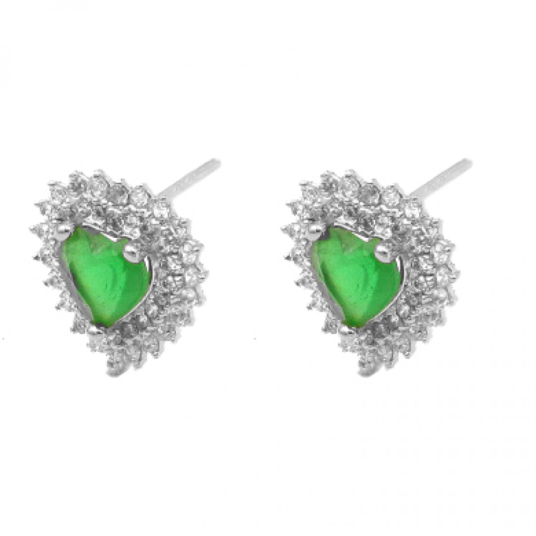 Brinco coracao verde esmeralda todo cravejado com zirconia branca, prata com banho de ouro, prata com banho de ouro. 153..