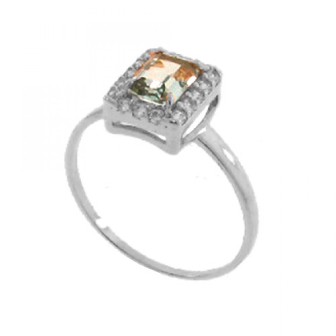 Anel retangular pedra maior azul agua marinha com zirconia cristal em volta. 141468