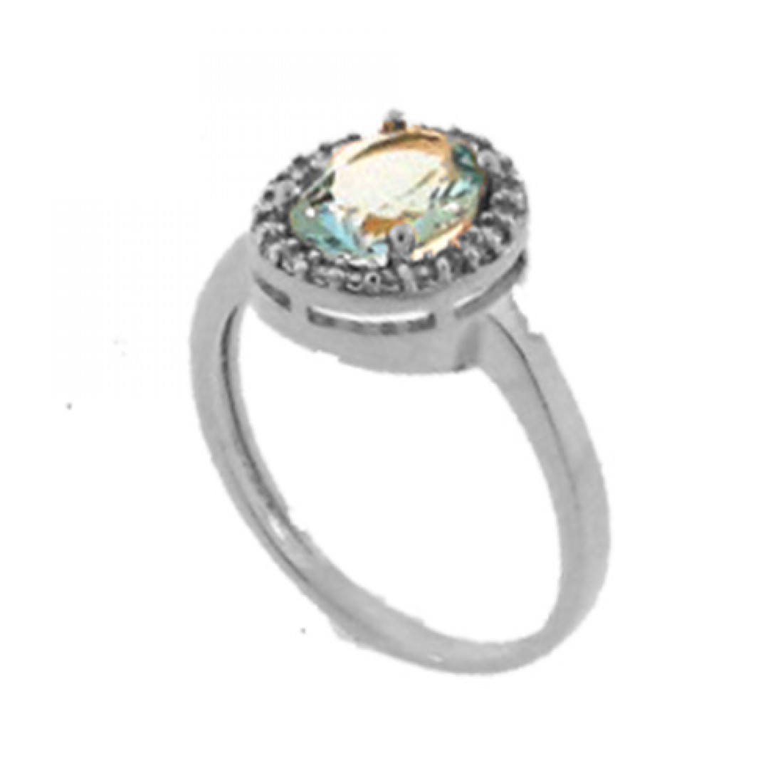 Anel oval pedra maior azul agua marinha com zirconia cristal em volta, prata com banho de ouro...