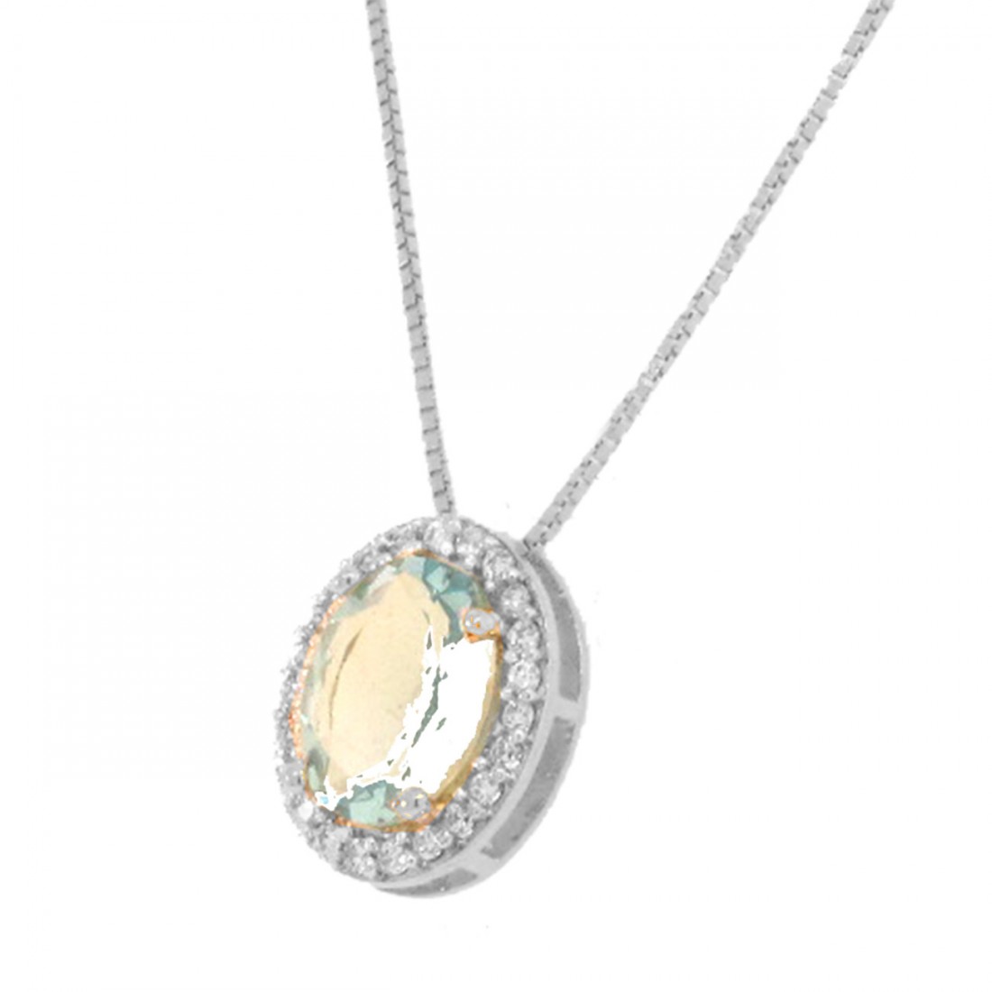 Colar oval pedra maior azul agua marinha com zirconia cristal em volta. 6x4mm. 161897
