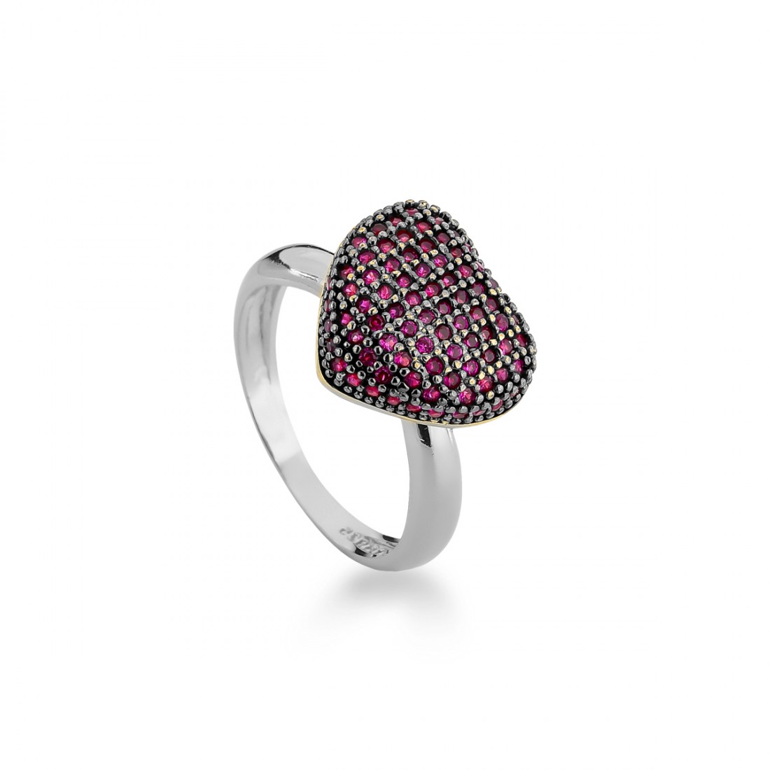 • Anel coracao abaulado zirconia vermelha, prata. 341457