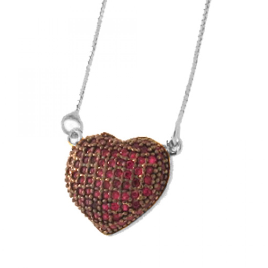 • Colar coracao abaulado zirconia vermelha. 7x9mm, prata. 361957