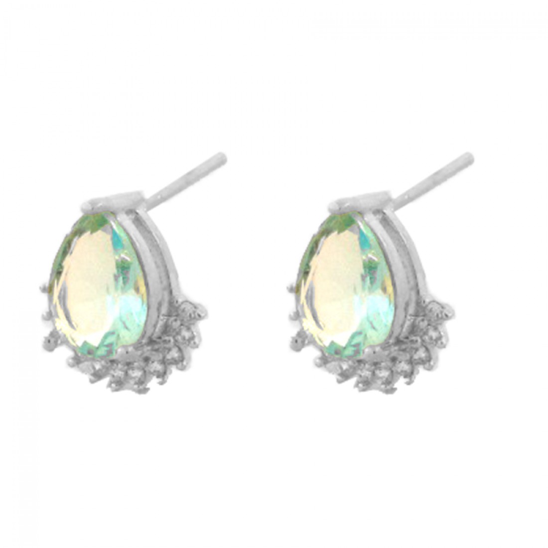 Brinco gota azul claro com zirconia cristal embaixo, prata com banho de ouro. 150030..
