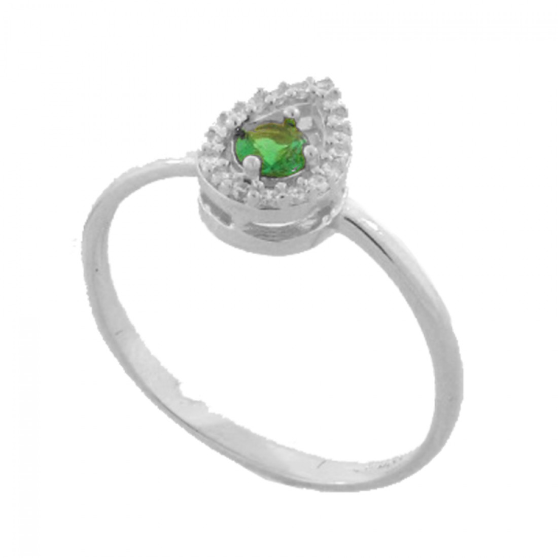 Anel gota pequena zirconia cristal em volta e verde rubii dentro, prata com banho de ouro. 1430078..