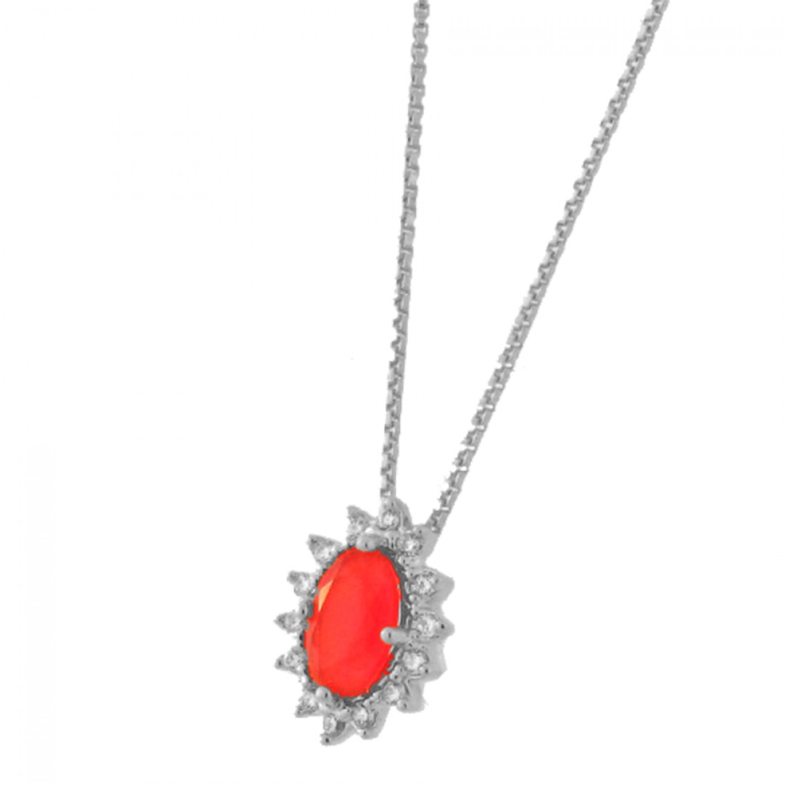 Colar pedra maior oval vermelho rubi, zirconia cristal em volta. 6x3mm, prata. 3630049