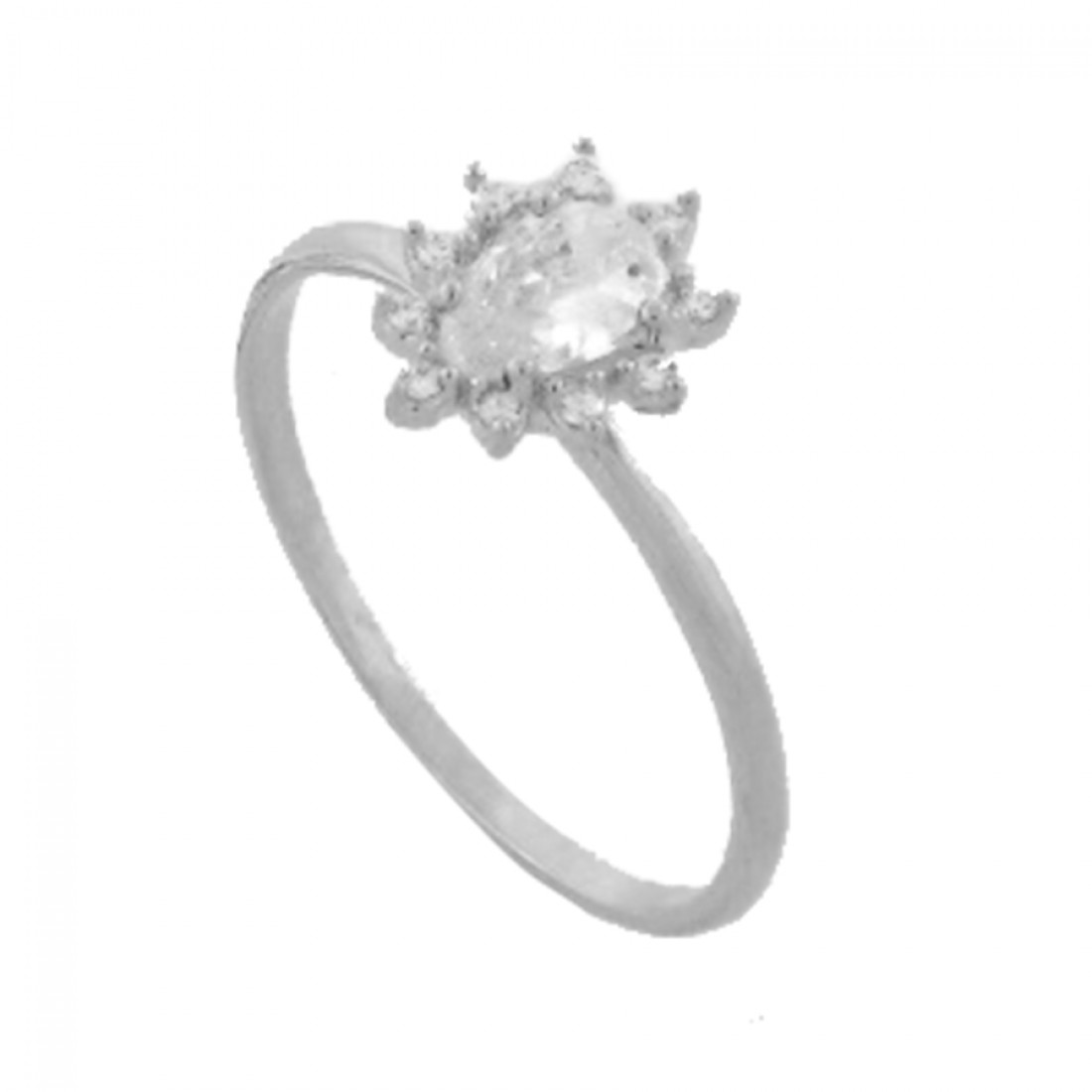 • Anel gota cristal e zirconia cristal em volta, prata. 3430050