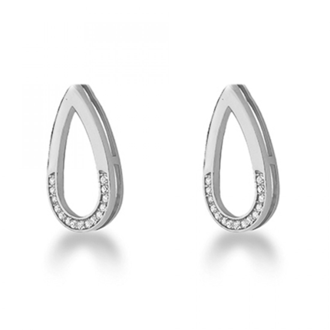 • Brincos gota vazada lisa em cima e zirconia cristal embaixo, Prata. 350766