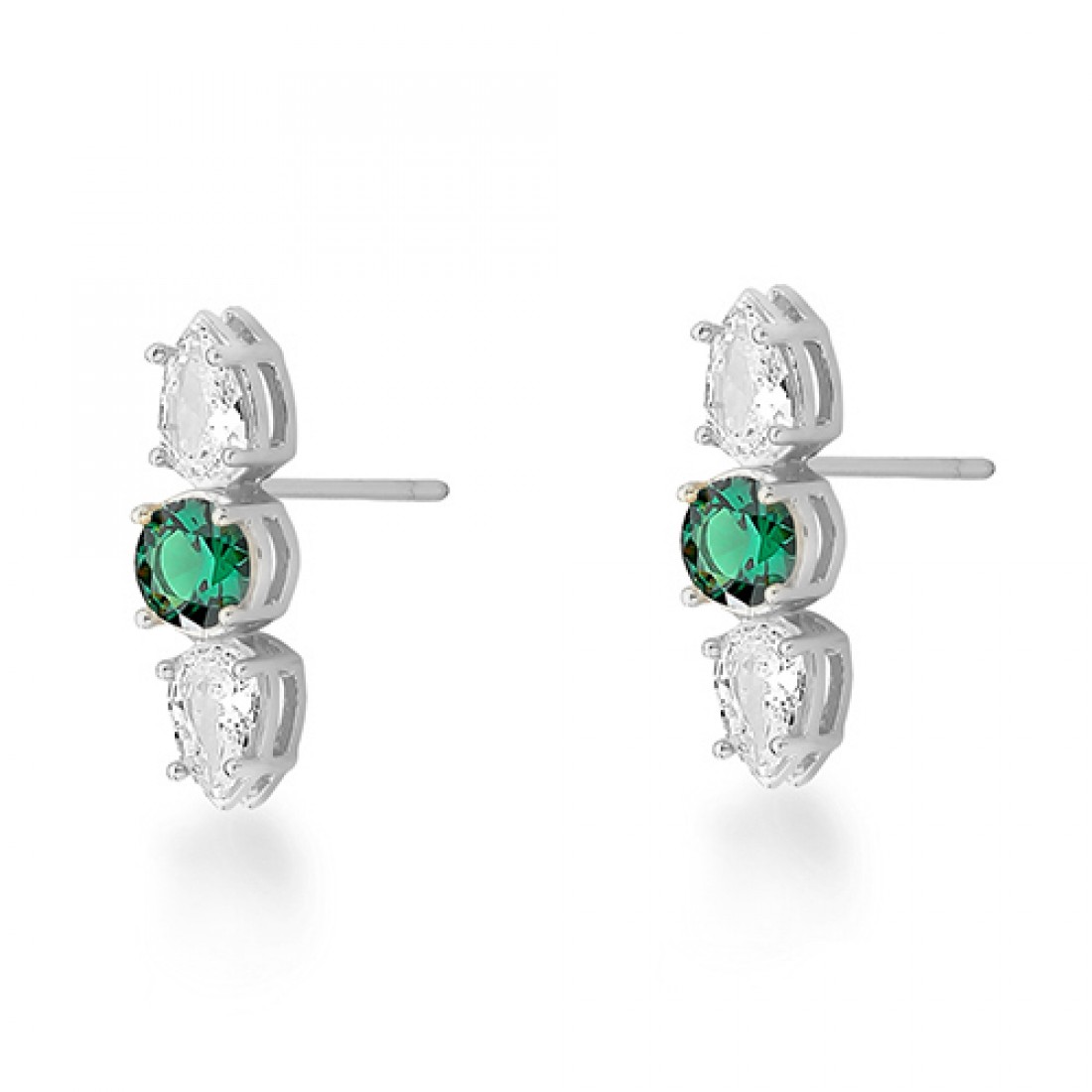 Brinco pedra redonda verde esmeralda no meio, e gota em cima e embaixo, 20mm, Prata. 1530218