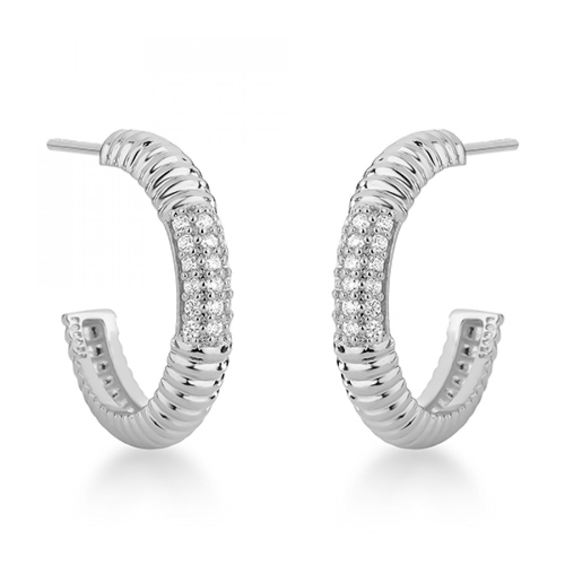 • Brinco meia argola riscado, centro com zirconia cristal, 17mm, Prata. 3535360
