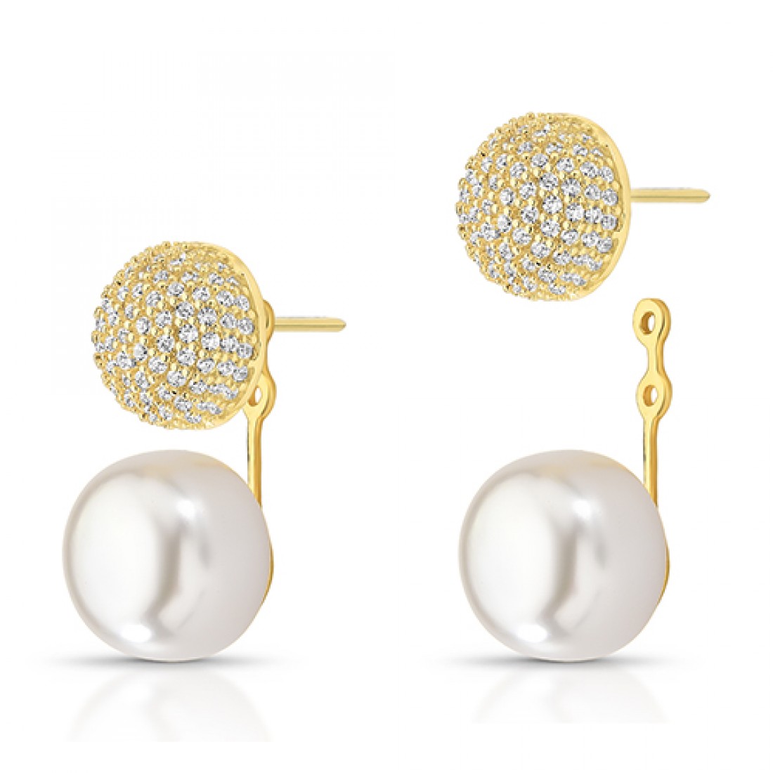 Brinco de encaixe esfera zirconia cristal e perola, prata com banho de ouro. 1520580