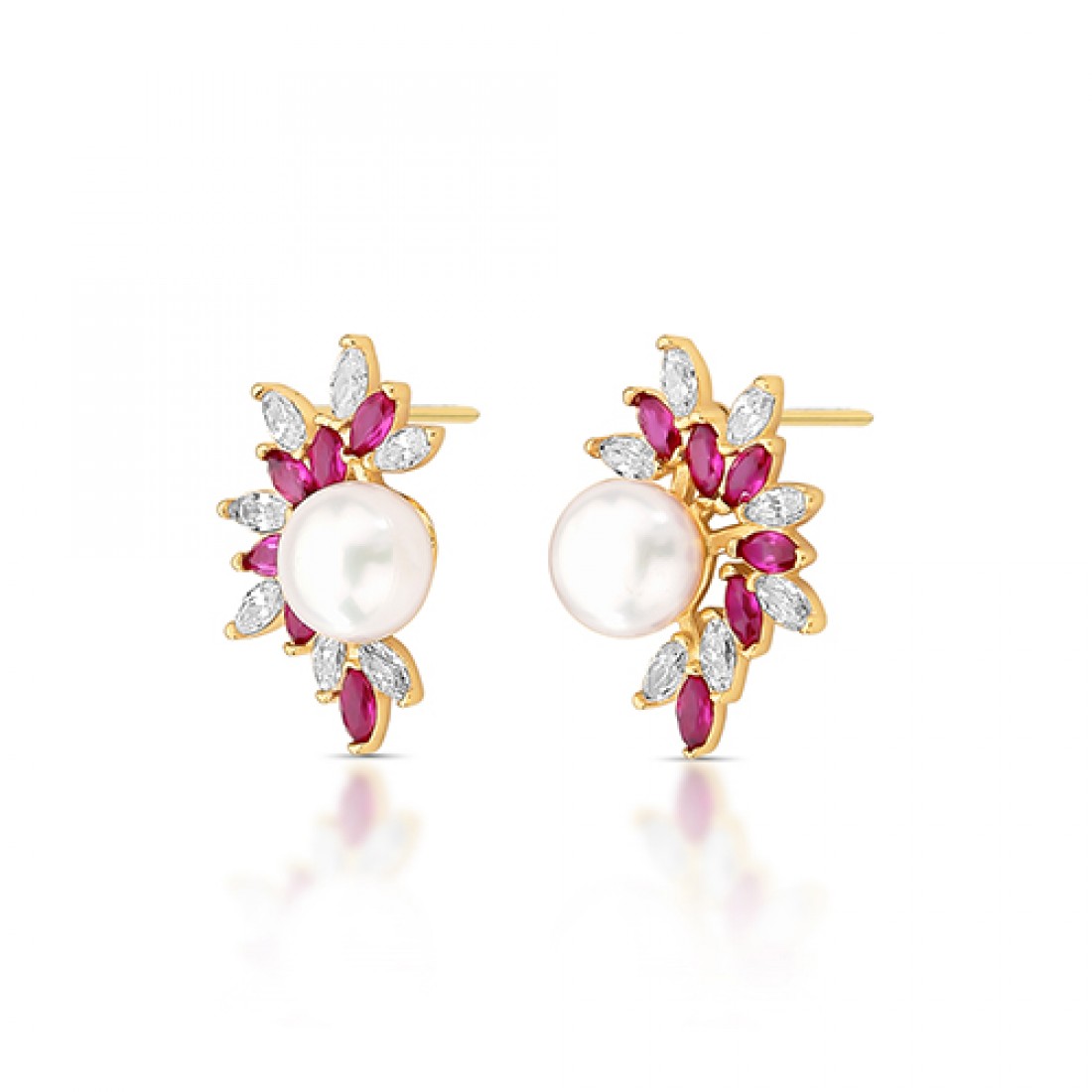 • Brinco com navetes cristal e vermelho rubi, perola 6mm. 16x10mm. 1535459