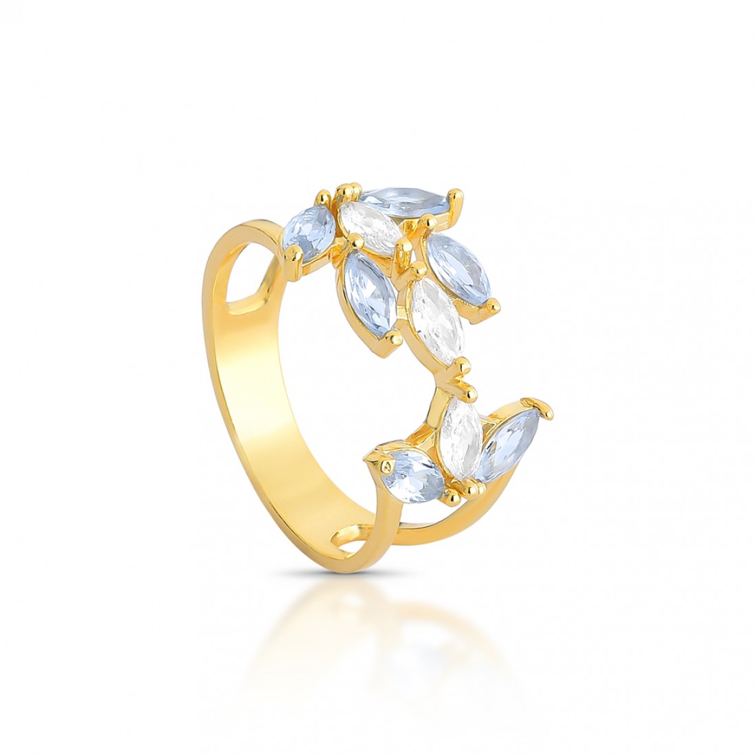 Anel 9 navetes, cristal e azul agua marinha. 3414211..